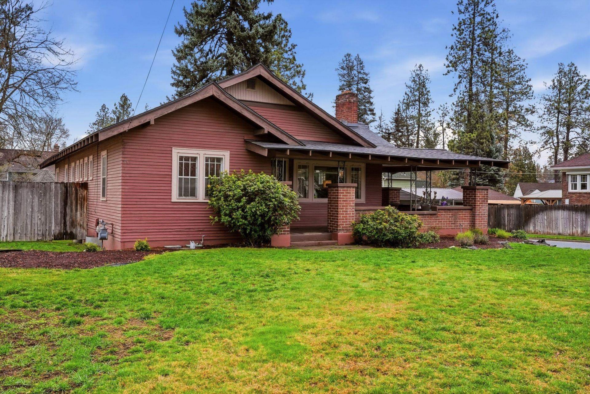 Beautiful craftsman bungalow just steps to Audubon Park and Downriver Golf Course. Brimming with timeless character, open living spaces & an absolutely spectacular wraparound porch?this home is equipped to enjoy neighborhood living at its best! Classic layout with brick fireplace, built-ins, original woodwork, hardwood floors, 2 main floor bedrooms & separate office/flex room. Sunny kitchen has quality updated cabinets, stainless steel appliances & a cheerful breakfast nook that captures morning light. Freshly painted with new LVP floors, and big-ticket upgrades including new roof, furnace & A/C! Basement has non-egress bedroom, rec room, workshop/storage & space to easily add 2nd bath. Prime corner lot with a nicely landscaped yard, sprinkler system, gazebo - and that amazing porch for morning coffee or evening gatherings. Walkable to parks, schools, coffee & restaurants, plus Spokane River, hiking & biking trails just minutes away. Its your time to grow into one of Spokanes most desirable neighborhoods!