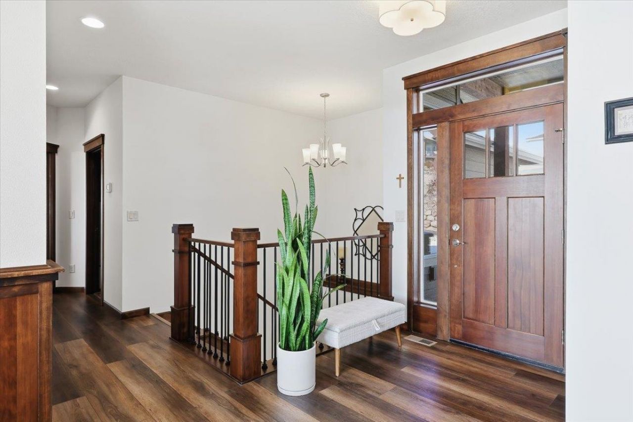 Stunning 2021 Custom Gordon Finch zero-step rancher in the coveted Northwood community with sweeping southerly views of the Spokane Valley. This 4 bed, 3 bath, 3,200+ sq ft home features an open-concept design with vaulted ceilings, LVP flooring, and a stone-surround gas fireplace with wrap-around mantle, built-ins, and floating shelves. The gourmet kitchen showcases knotty hickory soft-close cabinetry with roll-out drawers, granite island, stainless appliances, gas cooktop, wall oven, and oversized windows. The primary suite offers a shiplap accent wall, ceiling fan, and a spa-like bath with heated floors, double vanities, and a floor-to-ceiling tiled shower with dual heads including a rain head. Lower level includes a large family room, custom wet bar, guest suite, and storage. Energy-efficient 10.4 kW Enphase solar($850?$900/year savings, + EV-ready panel. Additional features: power blinds, CAT-7 wiring, fully landscaped w/ uplighting, fully insulated, finished, heated 3-car garage with epoxy floors.